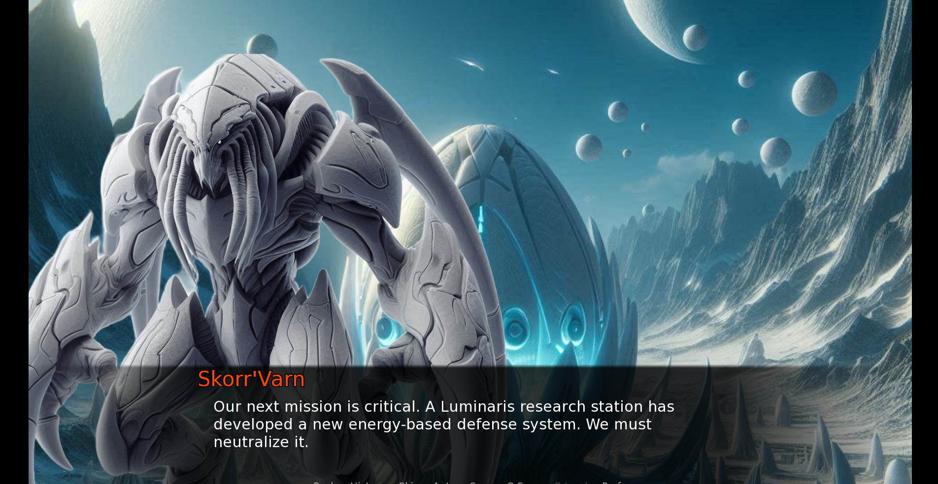 Evolvium is a sci-fi visual novel set in a galaxy torn by war between two powerful factions. The Luminaris, energy-wielders who seek peace and balance, battle the Xyrrans, a ruthless, evolving species bent on domination. As a new commander, you’ll make critical choices that will shape the galaxy’s future, uncovering secrets, forming alliances, and leading your chosen faction to victory. Will you preserve order or embrace evolution? The fate of the universe rests in your hands.
